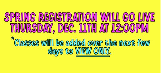 Fall class registration is open. We have (2) 9 week sessions this Spring. Some classes will be 8 weeks but will be noted as a shorter class in the name of the class with more info in the class details. You may register for Session 3, Session 4 or both- we just do not "hold" spots from session to session and are first-come, first serve. So, if you are particular about your time, make sure to sign up for both sessions.